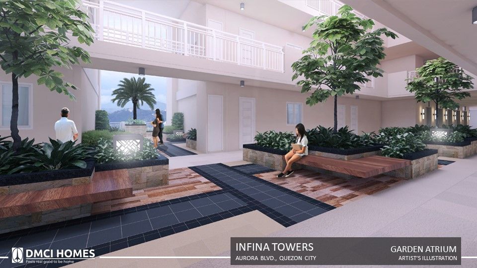 Welcome to Infina Towers by DMCI, a premier high-rise residential development in Quezon City. Infina Towers offers a modern tropical living experience with spacious units and luxurious amenities. Additionally, it is strategically located along Aurora Boulevard, ensuring convenience and accessibility for its residents. Embrace a lifestyle of comfort and elegance at Infina Towers, where urban living meets tranquility.