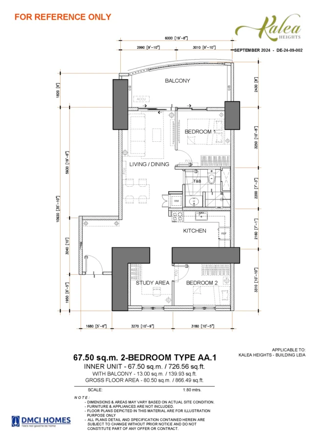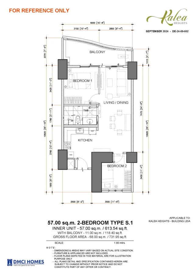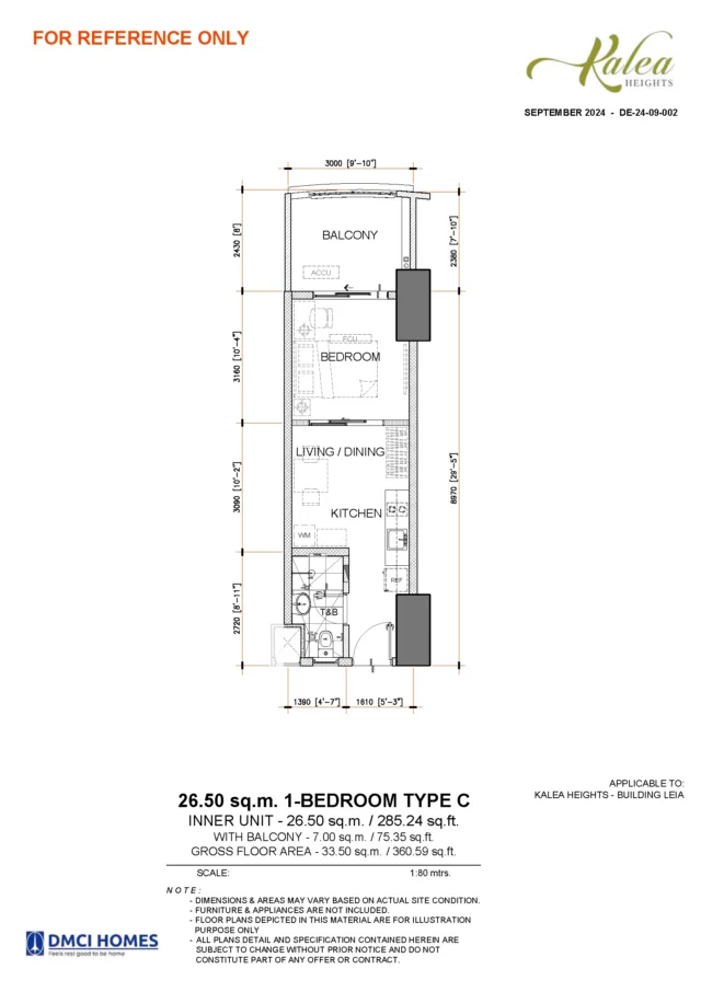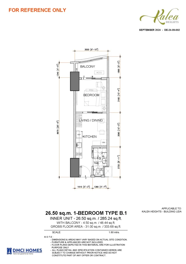 Ideal for young professionals, couples, and investors, the 1-bedroom units at Kalea Heights offer efficient layouts with defined living, dining, and kitchen areas. These units are well-suited for rental income and first-time property ownership.