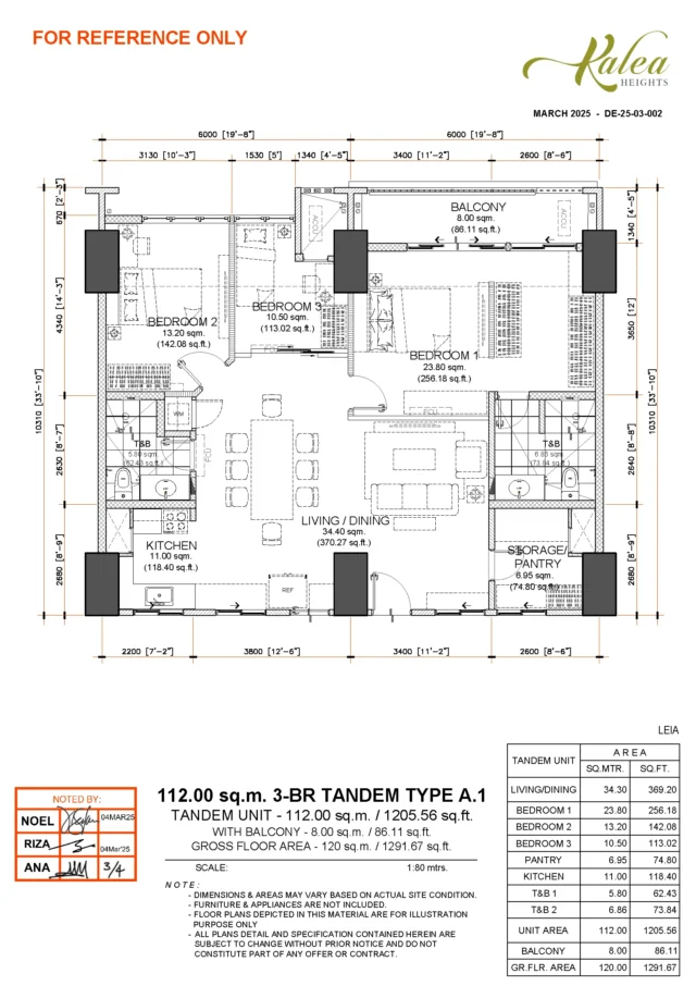 Kalea Heights also offers tandem units, which are created by combining two adjacent Type O and Type U 2-bedroom units into a single, larger residence. These tandem units provide significantly expanded living and dining areas, making them ideal for extended families, multi-generational living, or homeowners who want the space of a larger home within a condominium setting.